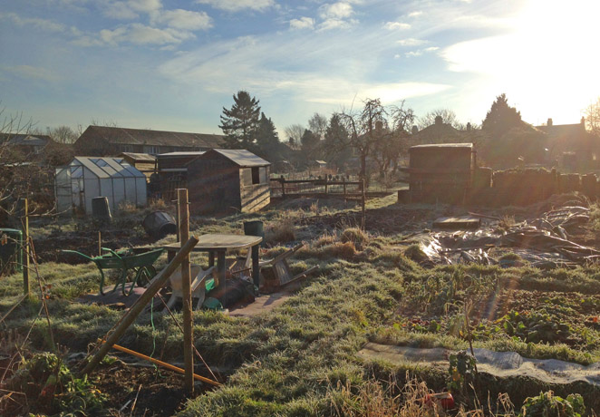 A frosty morning on plot at Wolverton Road Allotments, Stony Stratford. Next Image