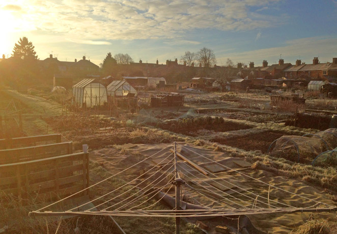 A frosty morning on plot at Wolverton Road Allotments, Stony Stratford.